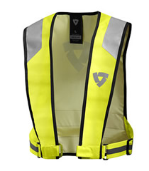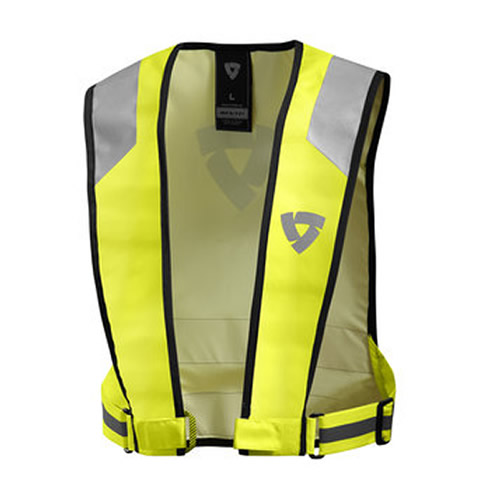 With the REV'IT! Connector HV vest, a rider wearing any jacket can easily and instantly be upgraded to better visibility. It is designed to wear over all jackets in a subtle and stylish way. Plus, it can be connected to a range of REV'IT! jackets without losing access to any of your jacket's original features. Thanks to its vented mesh construction and well-conceived harness that snugs down easily, the Vest connector HV won’t flap around or bubble with air like a parachute. The neon yellow fabric combined with the 3M Scotchlite reflection stripes dramatically increases riders’ visibility on the road. PROTECTION FEATURES: Outer Shell:PWR|shell mesh EN471, PWR|shell 500D stretch, PWR|shell 330 Composition: 100% polyester Visibility: 3M Scotchlite reflection at shoulders and back, reflective logo's at chest and back, reflective panel at waistband
